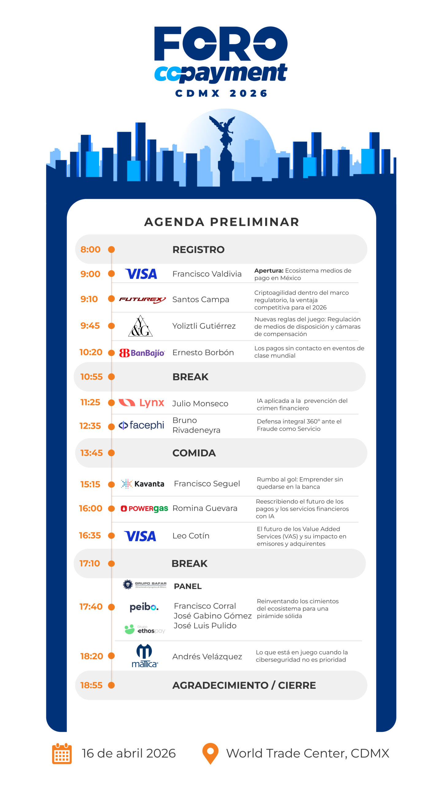 Jueves 16 de abril 2026 | World Trade Center, Ciudad de México
